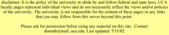 Instructor: Dr. Donna Bowman Office: McAlister 310 Office Phone: 450-3631 Office hours: MW 8-10 am, TTh 12-2 pm, or by appointment E-mail: donnab@mail.uca.edu